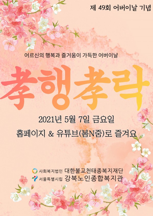- 온라인 행사 : 2021.05.07(금), 14:00, '시립강북노인종합복지관' 유튜브 채널 구독