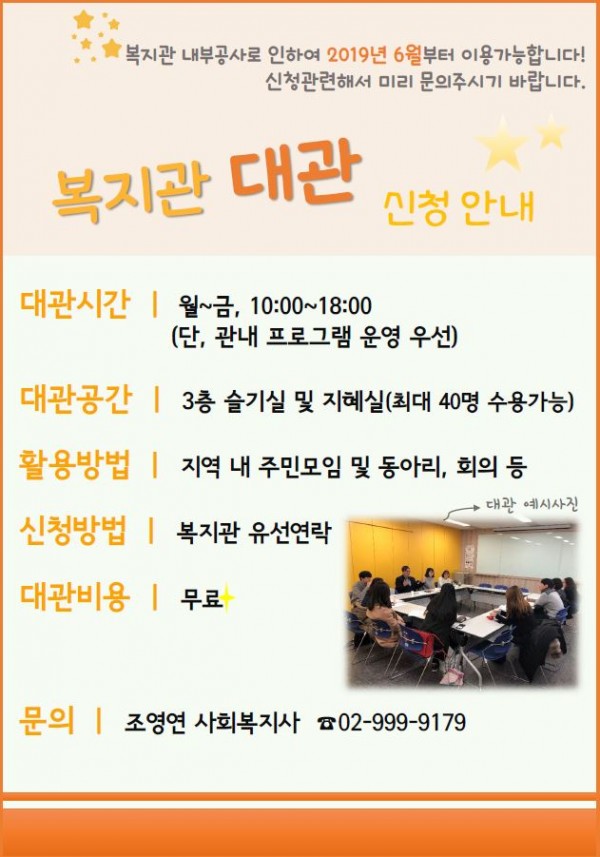 공지 [지역협력] 지역주민을 위한 복지관 시설 대관 안내