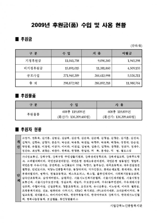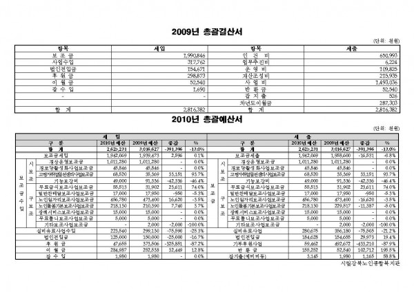 공지 2009년 복지관 결산 및 후원내역, 2010년 예산 공고