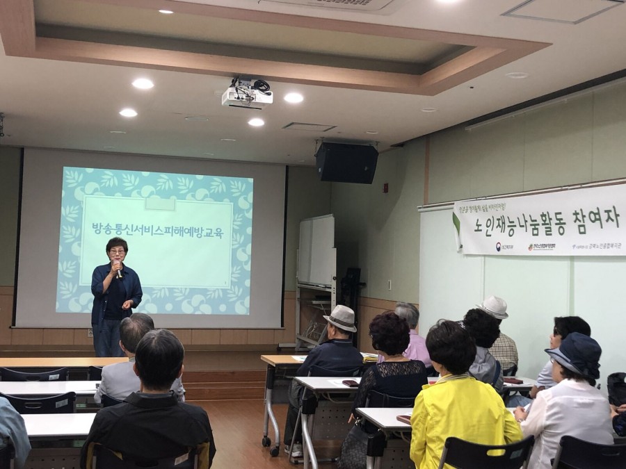 사회참여팀에서는 노인재능나눔활동지원사업 참여자들을 대상으로 추가교육을 진행하였습니다. 이번 교육에서는 재능나눔이 주는 선물을 주제로 노인재능나눔활동에 대해 생각해보고 방송통신서비스 피해를 예방할 수 있는 방법에 대한 정보를 습득하는 시간이 되었습니다.