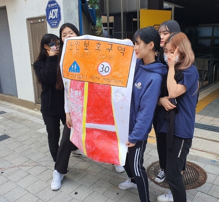 이번 봉사활동은 노인학대 및 노인보호구역에 대해 학생들이 직접 포스터를 만들고 어르신들에게 홍보하는 캠페인을 진행하였습니다.