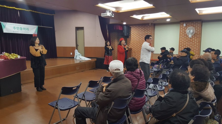 지역협력팀에서는 레크레이션 주민동아리가 경로당 임원 60명을 대상으로 웃음레크레이션 나눔문화실천 2회기를 진행하였습니다. 실버손놀이, 손유희, 건강율동 및 체조를 통해 참여자와의 즐거운 시간을 보냈으며, 참여자의 만족도가 매우 높았습니다. 한 해동안 함께해주신 주민동아리에 깊은 감사의 말씀을 전합니다.