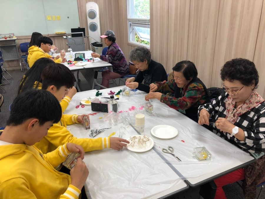 지역협력팀에서는 수유중학교, 인수중학교와 함께 지역기반형 교육복지협력사업 '공감' 하반기 2회기 활동으로 하바리움공예를 진행하였습니다. 1-3세대가 함께 다양한 플라워를 이용하여 나만의 꽃병을 만들어보았습니다. 대다수의 참여자가 처음 접하는 활동이라 생소하였지만, 모두가 재미있게 활동하여 마무리하였습니다.