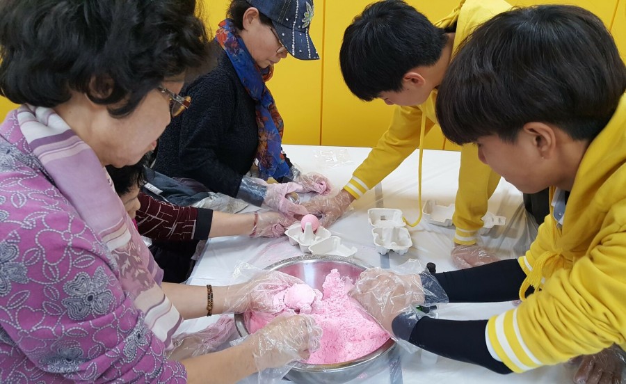 지역협력팀에서는 수유중학교, 인수중학교와 함께 지역기반형 교육복지협력사업 '공감' 하반기 4회기 활동으로 버블바스붐 만들기를 진행하였습니다. 이번 활동은 식용가루를 이용하여 다양한 디자인의 버블바스를 만들어보는 활동이었습니다. 직접 가루를 반죽하여 동그랗게 빗는 과정을 통해 1-3세대가 함께 소통하고 협력하는 좋은 기회가 되었습니다.