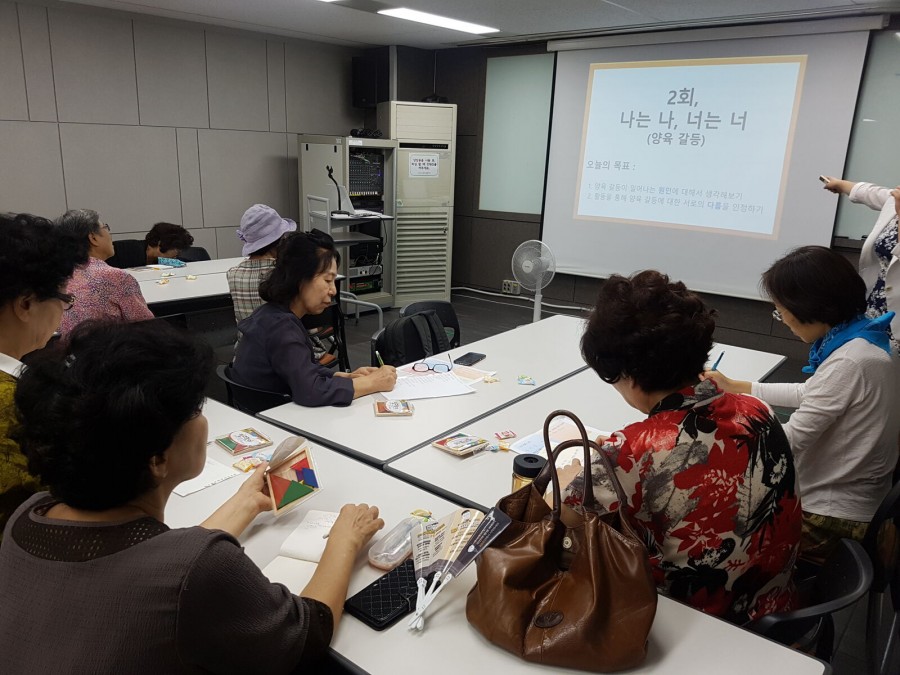 사회참여팀에서는 손자녀를 양육거나 돌보는 어르신들을 대상으로「손자녀를 둔 조부모들의 모임」프로그램을 진행하였습니다. 이번 교육에서는 '양육 갈등'을 주제로 진행하였습니다.
