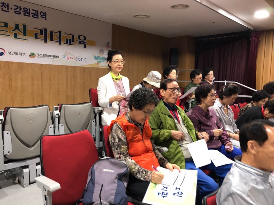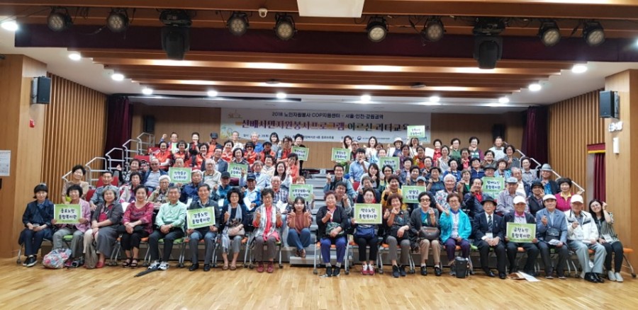 노인자원봉사활성화사업에서는 보건복지부, 한국노인종합복지관협회의 지원으로 2018년 선배시민 자원봉사 프로그램을 운영하고 있습니다. 프로그램에 참여하는 자원봉사자 중 리더어르신 6명과 함께 CoP지원센터 주관 리더교육에 참석하였습니다.