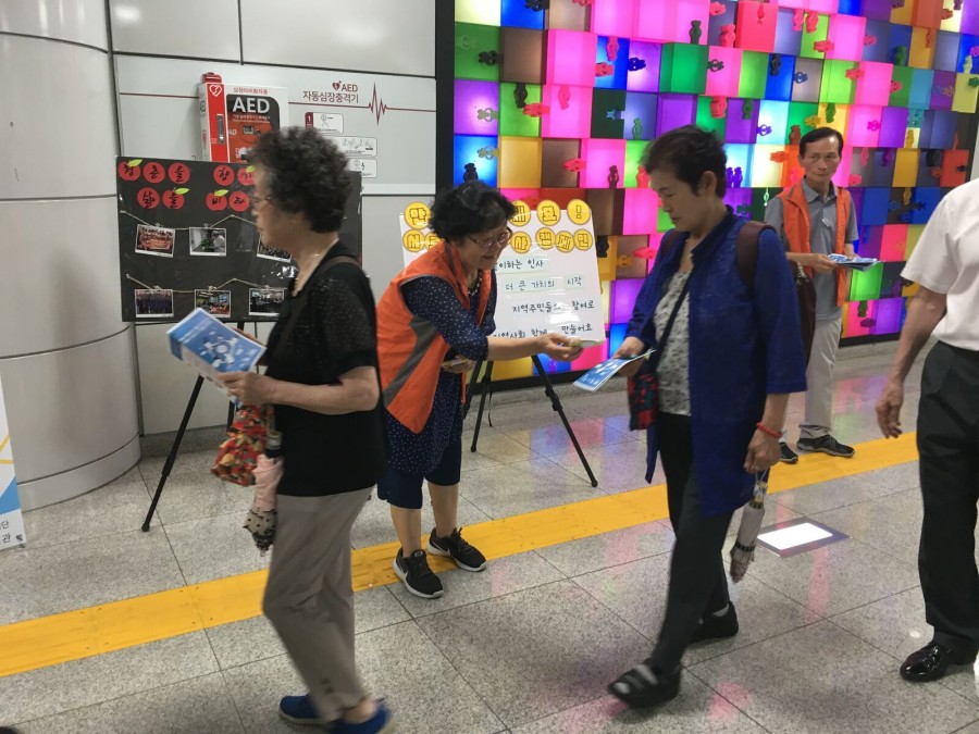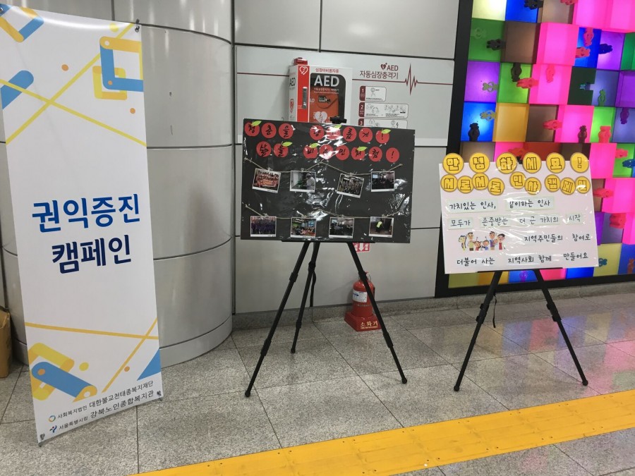 권익증진사업에서는 지역주민과 어르신들에게 노인인식개선캠페인(인사하기캠페인)을 진행하였습니다. 어르신들의 권익을 위해 꾸준히 노력하는 복지관이 되겠습니다.