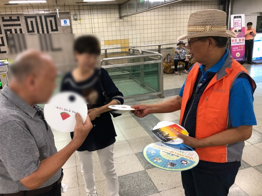 지역복지활성화사업에서는 경로당임원과 수유중학교, 수송중학교, 강북중학교학생들이 함께 수유역에서 무더위쉼터 캠페인을 실시하였습니다. 임원분들은 1조와 2조로 나누어1,3세대가 함께 부채와 무더위쉼터 팜플렛을 나누어 드리고 폭염에 관련하여 홍보하며 캠페인을 진행하였습니다. 더운날씨에도 캠페인에 참여해주신 어르신들과 학생들께 감사드립니다.