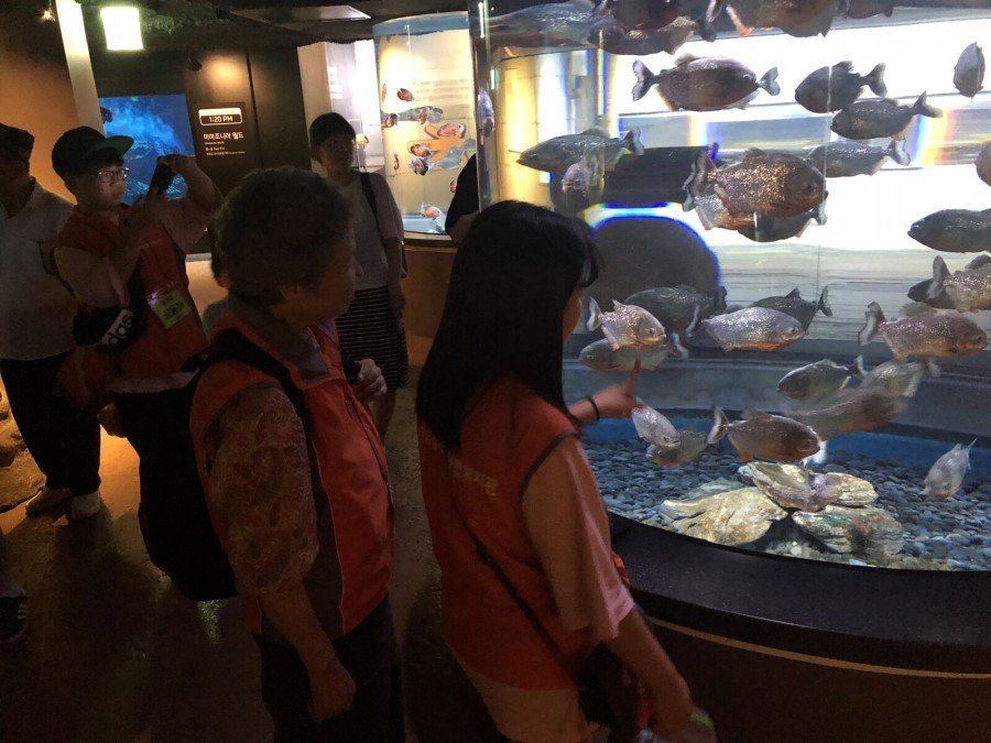 지역복지과에서는 수유중학교, 인수중학교와 연계하여 1-3세대가 함께 소통하고 교류하는 장을 만들고자 나들이를 실시하였습니다. 어르신 15명, 중학생 봉사자 15명 모두 참여하여 짝꿍과 함께 코엑스 아쿠아리움을 관람하였으며, 중간에 사진찍기 미션을 수행하며 즐거운 시간을 보냈습니다.