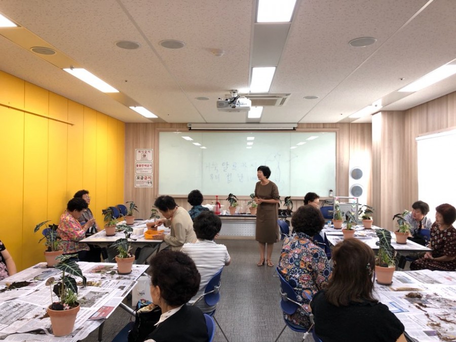 상담사업에서는 국민연금성북강북지사의 지원으로 2018 사회공헌기금지원사업 'FM교실(Find Me)' 프로그램을 운영하고 있습니다. 우울감이 있는 지역 내 어르신을 대상으로 우울감 감소를 위한 꽃꽂이 및 원예 프로그램을 진행하고 있습니다.