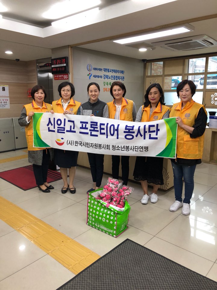 주민참여 신일고등학교 샤프론 프론티어 봉사단과 연계하여 노인돌봄기본서비스사업, 밑반찬 배달 대상자 200명을 대상으로 어버이날 맞이 카네이션을 전달하였습니다. 지역사회 어르신들을 위해 예쁜 카네이션을 직접 만들어 전달해주신 신일고등학교 샤프론 프론티어 봉사자분들께 감사의 말씀을 전합니다.