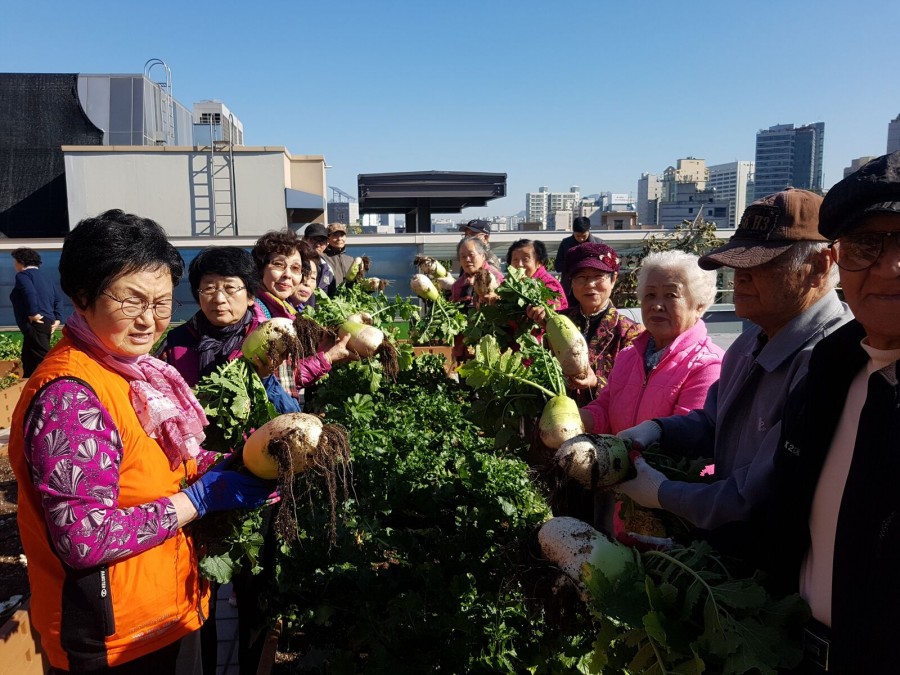 본 복지관 옥상텃밭에서 배추와 무를 진행하였습니다. 수확한 무를 가지고 김치를 만들어 수육과 함께 나눠먹는 즐거움을 공유하였습니다.