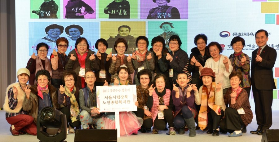 참여복지과 평생교육사업에서는 문화체육관광부, 한국문화예술교육진흥원, 한국노인종합복지관협회에서 지원하는 2017년 문화예술교육지원사업 '두근두근 청춘제'에 참석하였습니다. 어르신들이 연습해온 내용을 바탕으로 문화공연을 진행하였습니다. 즐김, 성장, 꿈꾸는 등 다양한 내용을 가지고 진행되었으며 행복한 공연이 되었습니다.