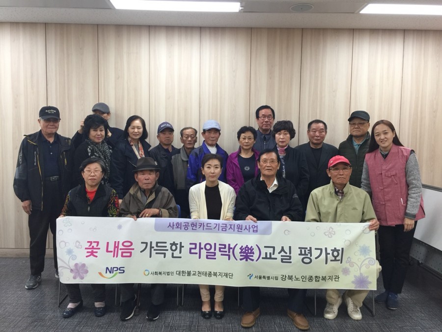 자원봉사자육성사업에서는 국민연금공단성북강북지사의 지원으로 저소득 남성 어르신을 대상으로 '라일락교실'을 진행하고 있습니다. 프로그램을 마무리하며 진행된 사업에 대한 평가회를 진행하여 어르신들과 국민연금 수급 자원봉사자들의 소감을 공유하며 뜻깊은 시간을 보냈습니다.▣ 진행일시 : 2017년 10월 26일(금), 11:00~13:00▣ 진행장소 : 3층 슬기실