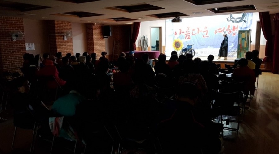 평생교육사업에서는 각당복지재단과 연계하여 어르신들 및 지역주민에게 "아름다운 여행" 연극을 제공하였습니다. 평소 죽음에 대해 한 번 생각해보지 못한 사람들에게 죽음이란 숭고한 것이며 아름다운 여행이다라는 내용으로 어르신들 및 지역주민에게 새로운 경험을 제공하였습니다.
