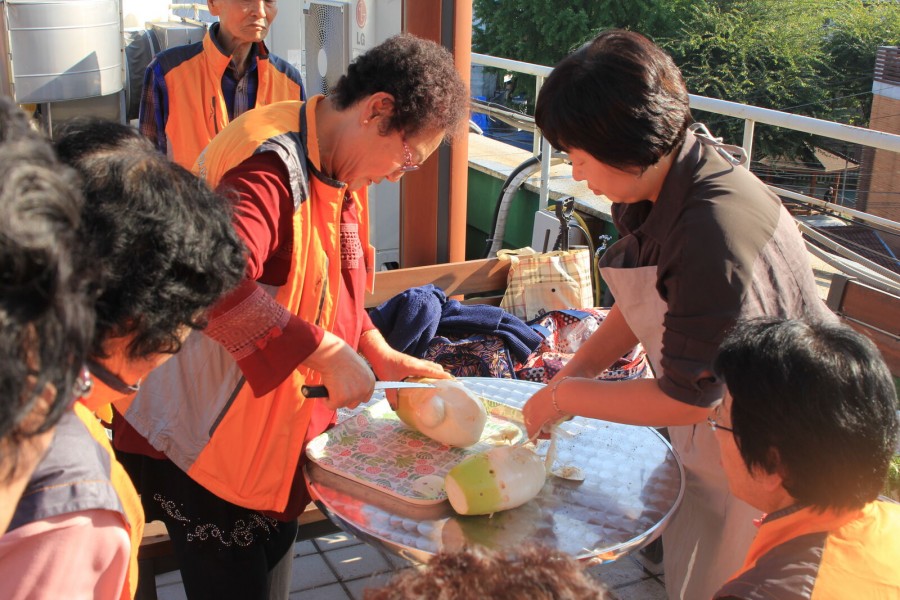 본 복지관 옥상텃밭에서 웃거름주기, 배추벌레 잡기를 진행하였습니다. 또한 어르신들과 함께 수확한 무를 맛보는 활동을 통해 성취감을 느꼈으며, 수세미 만들기, 허브를 이용한 허브소금 만들기를 진행하였습니다.
