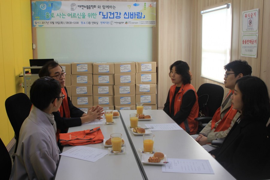 지역복지과에서는 노인돌봄기본서비스 사업 참여 어르신 50명을 대상으로 대한뇌졸중학회와 함께하는 '뇌건강 신바람' 가정방문 행사를 진행하였습니다. 대한뇌졸중학회원 4명이 어르신 가정에 방문하여 식품키트(김, 추어탕 외 7종)를 지원하고, 어르신의 말벗이 되어드렸습니다.