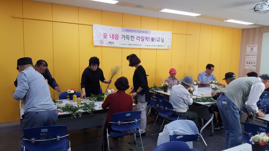 자원봉사자육성사업에서는 국민연금공단성북강북지사의 지원으로 6월부터 매주 목요일에 남성 독거 어르신들과 국민연금 수급 자원봉사자와 함께 꽃꽂이 교육을 진행하고 있습니다. 이에 참여자들의 성과를 확인하고 활동에 대한 동기를 부여하고자 전시회를 운영하고 있으니 많은 분들의 관람 요청드립니다.