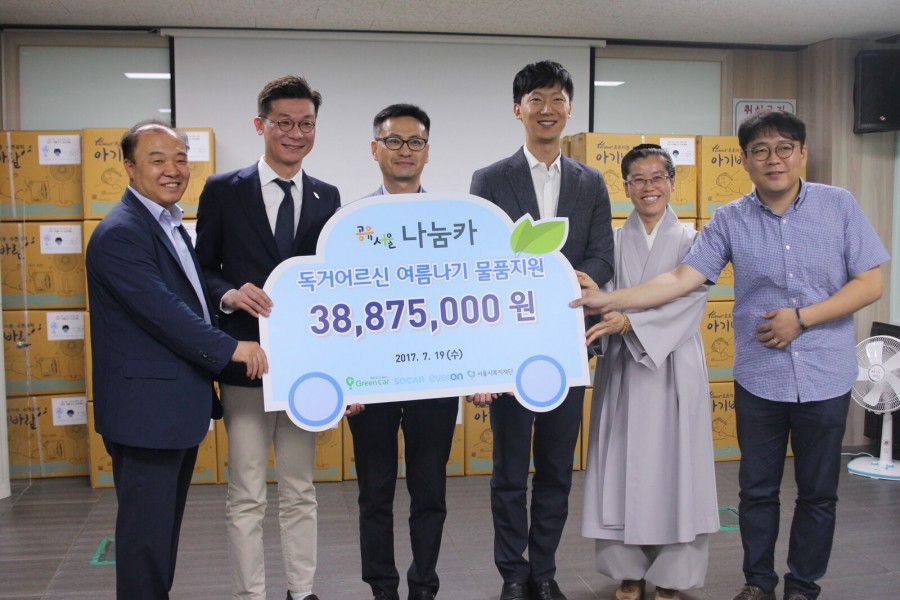 지역복지과에서는 서울시복지재단, 서울시나눔카(그린카, 쏘카, 에버온)와 연계하여 경로식당사업, 밑반찬배달사업, 노인돌봄기본서비스사업 참여대상자 145명에게 여름나기 물품(선풍기, 여름이불)지원을 위한 기부금전달식을 진행하였습니다.