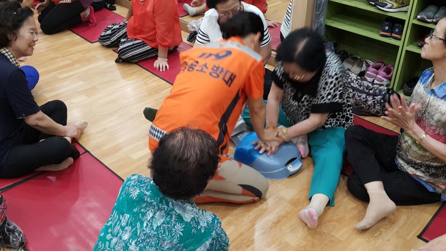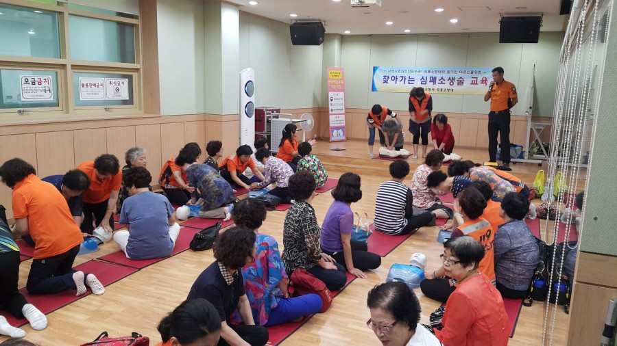 본 복지관 평생교육팀에서는 강북구 의용소방대와 연계하여 복지관 회원 및 지역주민 30여명을 대상으로 심폐소생술 교육을 진행하였습니다.