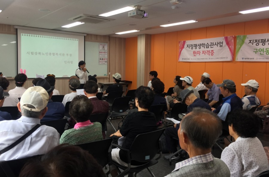 본 복지관 평생교육사업에는 지정평생학습관사업 종강식을 진행했습니다. 어르신들은 그간 배웠던 한자 교육을 바탕으로 취득한 자격증 수료식과 구연동화 학습을 통해 나간 재능나눔활동의 내용을 발표하는 시간을 가졌습니다.