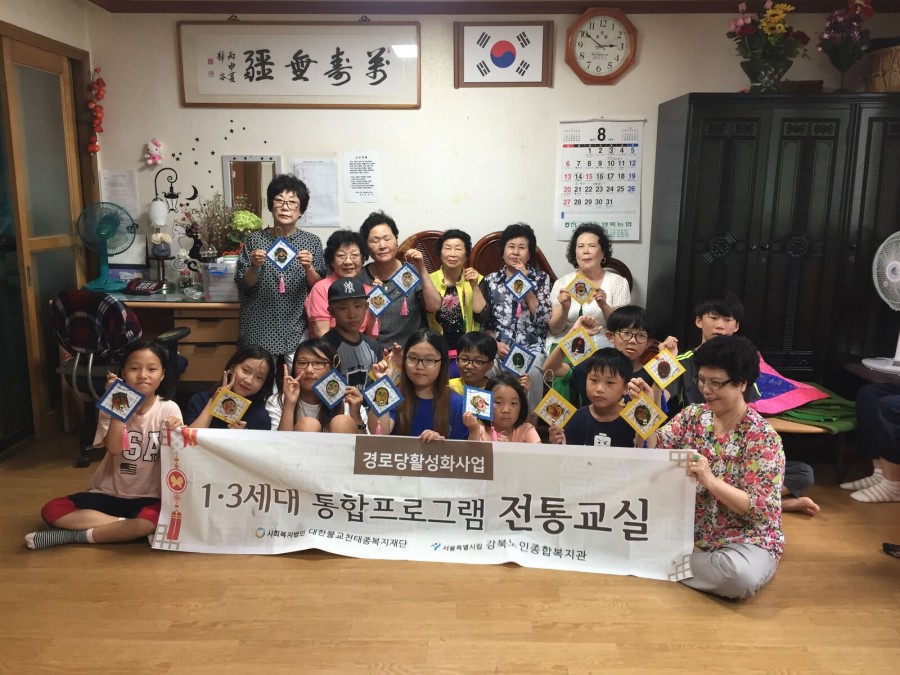 참여복지과에서는 송중동지역아동센터 아동들과 원송경로당이 협력하여  1·3세대 통합 프로그램 전통교실을 진행하였습니다. 전통꽃부채 만들기, 탈한지 하회탈 벽걸이 만들기, 민요수업을 통해 전통문화를 체험하며 옛것의 소중함을 느끼는 시간이 되었습니다.
