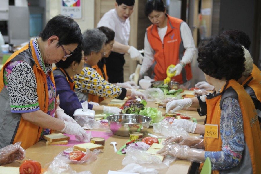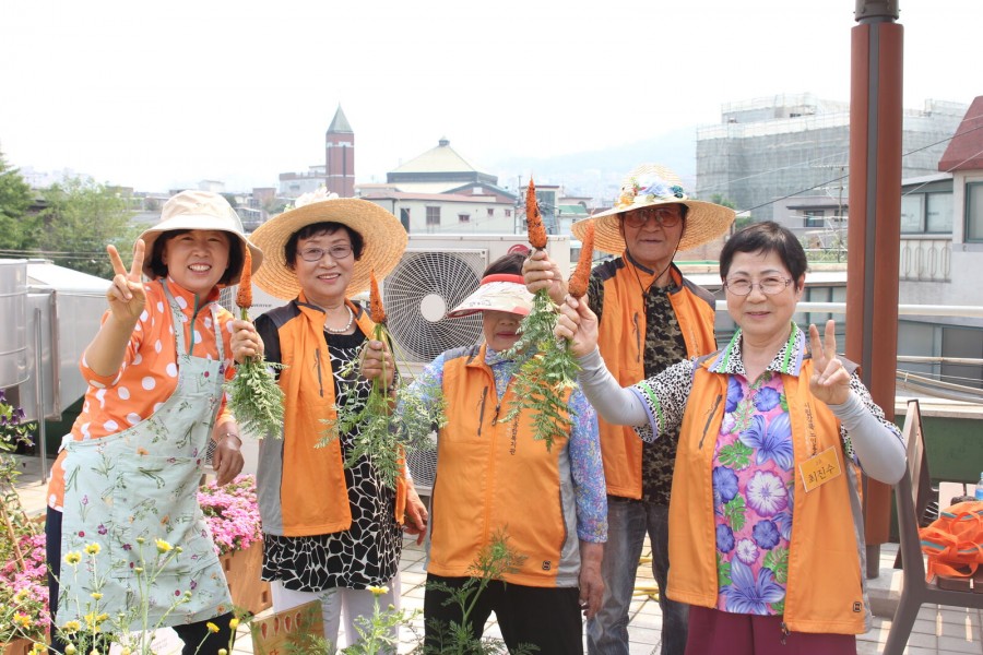 본 복지관 옥상텃밭에 당근 수확, 상추수확 및 천연농약 뿌리는 활동을 하였습니다. 또한 어르신들과 함께 수확한 작물을 이용하여 샐러드 및 샌드위치 만들기를 진행하였습니다.