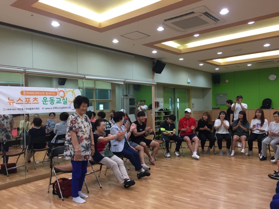 본 복지관 평생교육팀에서는 한국체육대학교 노인체육복지학과와 연계하여 뉴스포츠운동교실 수업을 진행하고 있습니다. 수업을 마무리하며 뉴스포츠운동교실 평가회를 진행하여 학생들과 어르신의 소감을 공유하며 뜻깊은 시간을 보냈습니다.▣ 진행일시 : 2017년 6월 23일(금), 10:00~11:00▣ 진행장소 : 3층 정진실