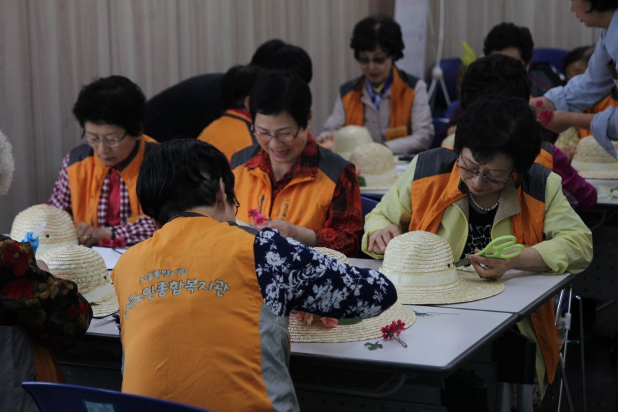 본 복지관 옥상텃밭에 열매채소 지지대를 세우고 상추를 수확하는 활동을 하였으며, 어르신들이 직접 모자를 만드는 즐거운 시간을 가졌습니다.