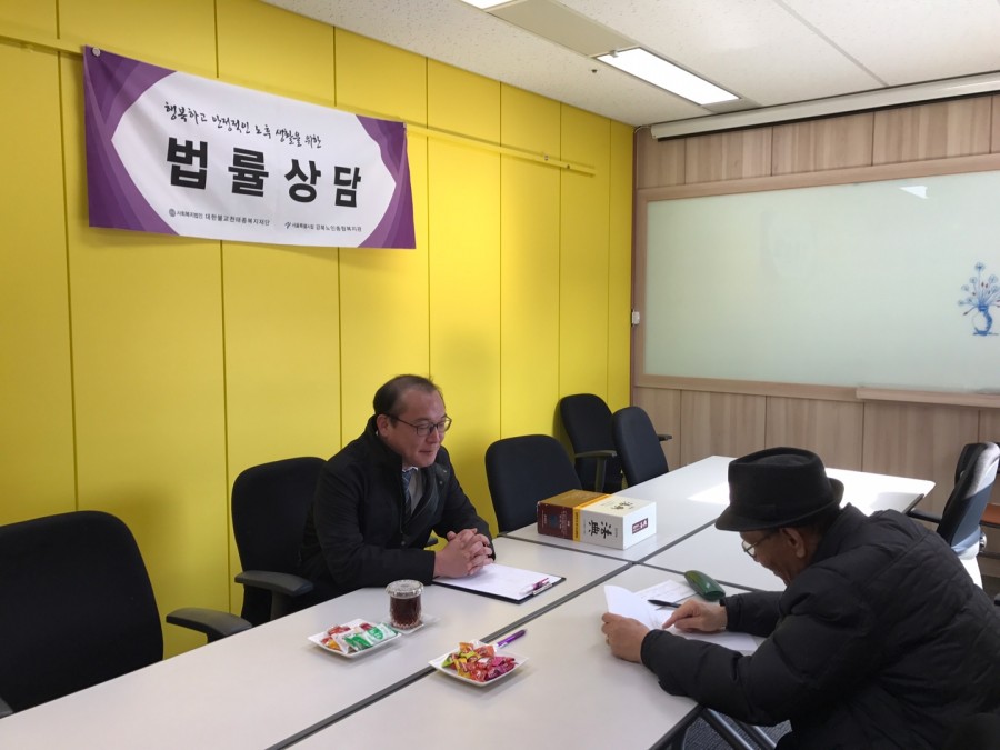 본 복지관 종합상담사업에서는 이용자 어르신들을 대상으로 생활 속에서 발생되는 법적문제의 해결을 돕고자 정석진변호사 사무소, 대한법률구조공단과 연계하여 무료법률상담을 진행하였습니다.