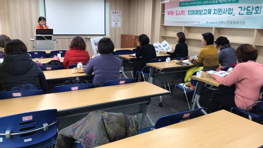 사례개발사업에서는 똑똑! 도시락, 치매예방교육 지원사업에 참여하는 생활관리사 10명을 대상으로 간담회를 실시하였습니다. 간담회를 통하여 2016년 사업 운영에 대하여 전반적으로 공유하고 2017년 사업 계획을 수립하는 시간을 가졌으며 건의사항, 질의사항, 개선사항 등에 대한 의견을 수렴하고 어르신의 변화 사례에 대하여 이야기 나누는 시간을 가졌습니다. 꾸준한 소통과 상호 간 격려와 지지를 통하여 사업의 목적을 달성하고 치매서포터즈로써의 역량강화와 사명감을 잊지 않고 더욱 발전하도록 하겠습니다.