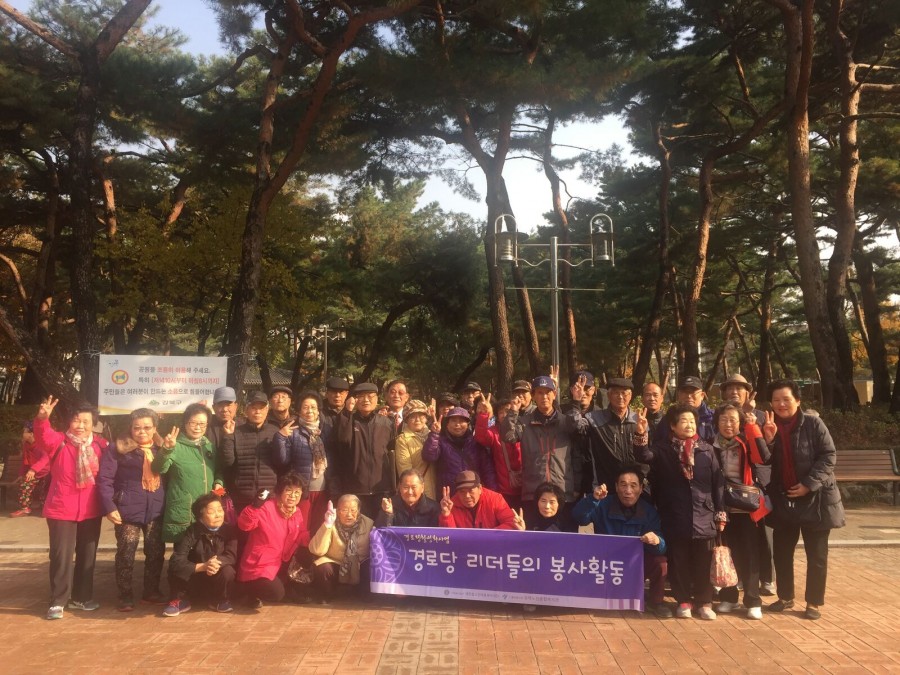 기획경로당팀에서는 경로당 임원 봉사활동을 통하여 경로당 임원진에게 지역사회에 공헌할 수 있는 기회를 제공하여 이를 통해 지역사회 내에서 경로당의 긍정적인 이미지 확립과 경로당 임원들의 다양한 사회참여를 독려하여 지역 내 긍정적인 역할 수립을 도모하기 위해 "임원 봉사활동"을 진행하였습니다.