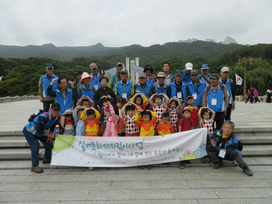 복지1과 실버문화재지킴이사업 1. 3세대 통합 프로그램 '할아버지. 할머니와 함께 걷는 북한산둘레길' 북한산들레길지킴이 어르신들과 강북구 육아종합지원센터 연계기관 새롬어f린이집 대상으로 프로그램 진행하였습니다. 국립4.19민주묘지에서 기념탑 참배, 4.19혁명기념관 관람, 잠자리 만들기 체험활동를 통해 1.3세대통합에 기여하는 기회를 가졌습니다.