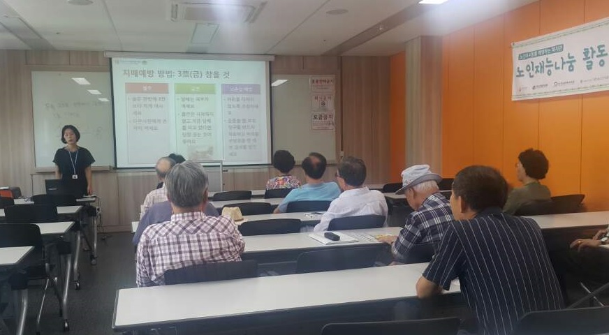본 복지관 사회교육사업에서는 노인재능나눔활동지원사업 소양교육 및 참여자 간담회를 진행하였습니다. 소양교육으로는 어르신들에게 필요한 치매예방교육을 진행하여 어르신들의 교육에 대한 욕구를 충족하였고 참여자 간담회를 통해 사업에 대한 이야기를 들어보며 점검할 수 있는 기회를 가졌습니다.