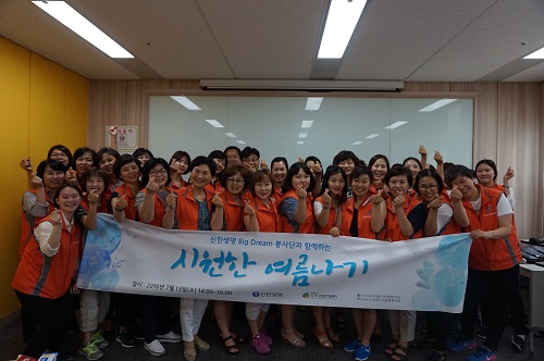 시립강북노인종합복지관에서는 신한생명 Big Dream 봉사단과 함께하는 시원한 여름나기 행사를 신한생명 Big Dream 봉사단 21명, 생활관리사 10명과 함께 진행하였습니다. 금번 신한생명에서 수박과 식품키트(반계탕, 두유 등)를 후원해주셨으며, 봉사단과 함께 대상 어르신 30가정에 방문하여 전달하였습니다.