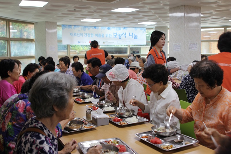 본 복지관에서는 금일 강북구 내 홀로 사시는 어르신들을 대상으로 혹서기 영양관리를 지원하고 기업 후원과 사회봉사활동을 통한 지역사회 내 경로효친사상을 고취시키고자 신한생명, 사회복지공동모금회, 독거노인종합지원센터의 후원으로 보양식(한방갈비탕) 나눔 행사를 실시하였습니다.