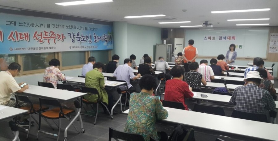 본 복지관 사회교육사업에서는 어르신들의 정보화 검색 능력 확인 및 제2회 강북노인종합복지관장배 스마트 검색대회 진출을 위하여 제2회 강북노인종합복지관장배 스마트 검색 대회 예선전을 진행하였습니다.