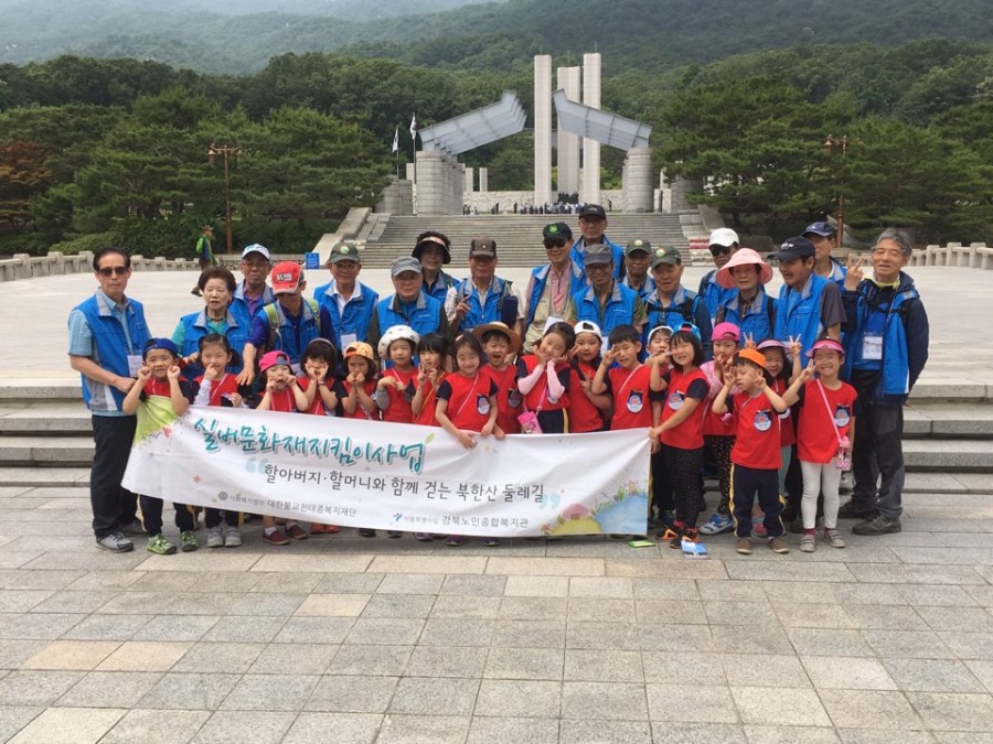복지1과 실버문화재지킴이사업 1. 3세대 통합 프로그램 '할아버지. 할머니와 함께 걷는 북한산둘레길' 북한산들레길지킴이 어르신들과 강북구육아종합지원센터에서 연계하여 탐구어린이집 대상으로 프로그램 진행하였습니다. 국립4.19민주묘지에서 기념답 참배, 4.19혁명기념관 관람, 풀잎손수건 만들기 체험활동를 통해 1.3세대통합에 기여하는 기회를 가졌습니다.