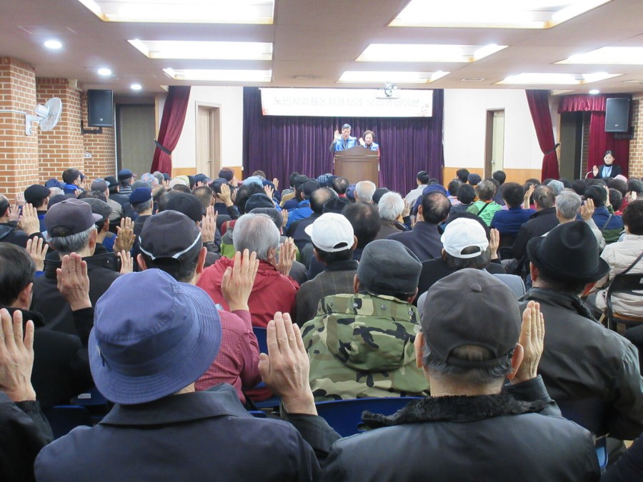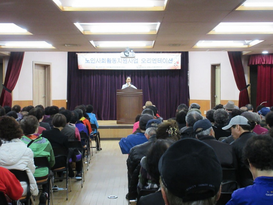 복지1과 노인사회활동지원사업에서는 지난 3월 4일(금) 2016년 노인사회활동지원사업 9개월 사업단 참여자를 대상으로 2016년 노인사회활동지원사업 시작의 알림 및 사업방향과 주요 변경사항에 대해 안내하기 위해 "2016년 노인사회활동지원사업 발대식 및 오리엔테이션"을 진행하였습니다. 이번 발대식 및 오리엔테이션에서는 관장님 인사말 및 담당 직원 인사, 다짐문 낭독, 2016년 주요 변경사항 및 활동방법, 공지사항 등으로 진행하였습니다.