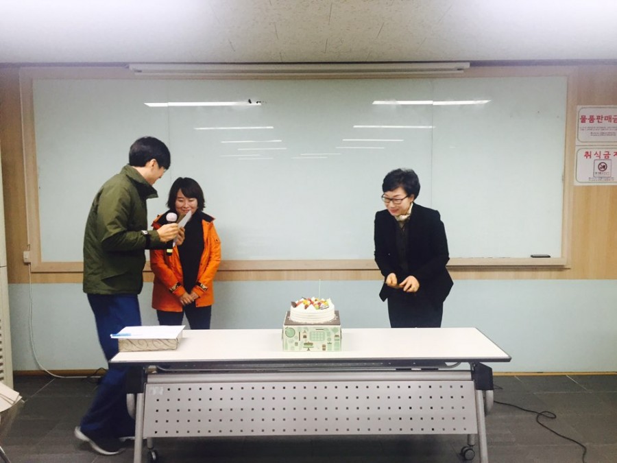 월례회의 이후에는 상조회에서 2월에 생일을 맞이한 직원들의 생일을 축하하는 시간이 있었습니다.