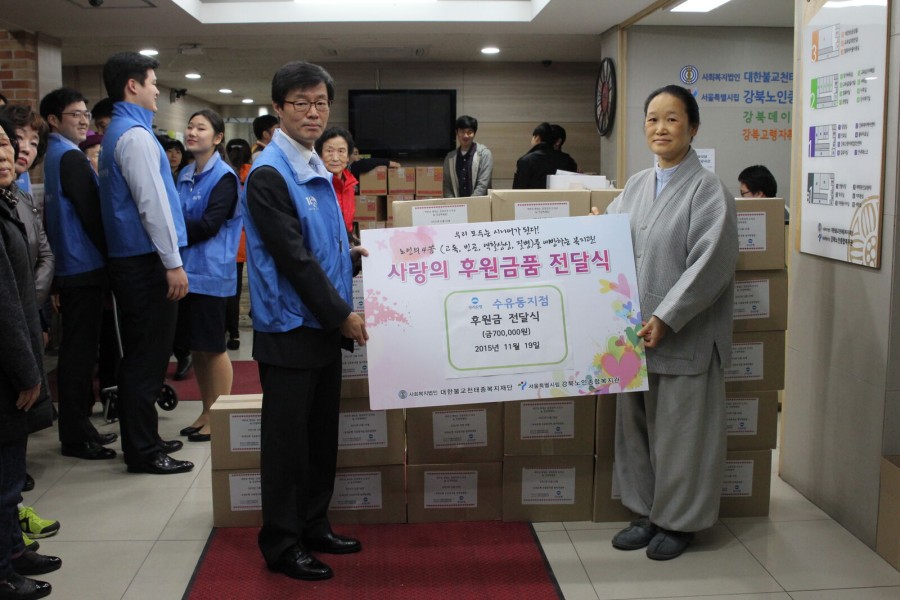 후원사업에서는 우리은행 수유동지점의 후원으로 강북구 내 저소득 독거어르신 28명에게 김장김치를 나누어드리는 행사를 진행하였습니다. 이와 더불어 우리은행 수유동지점 임직원분들의 김장김치 포장 자원봉사를 실시하였으며, 생활관리사에게 김장김치를 전달하여 어르신들에게 제공하는 뜻 깊은 시간이 되었습니다.