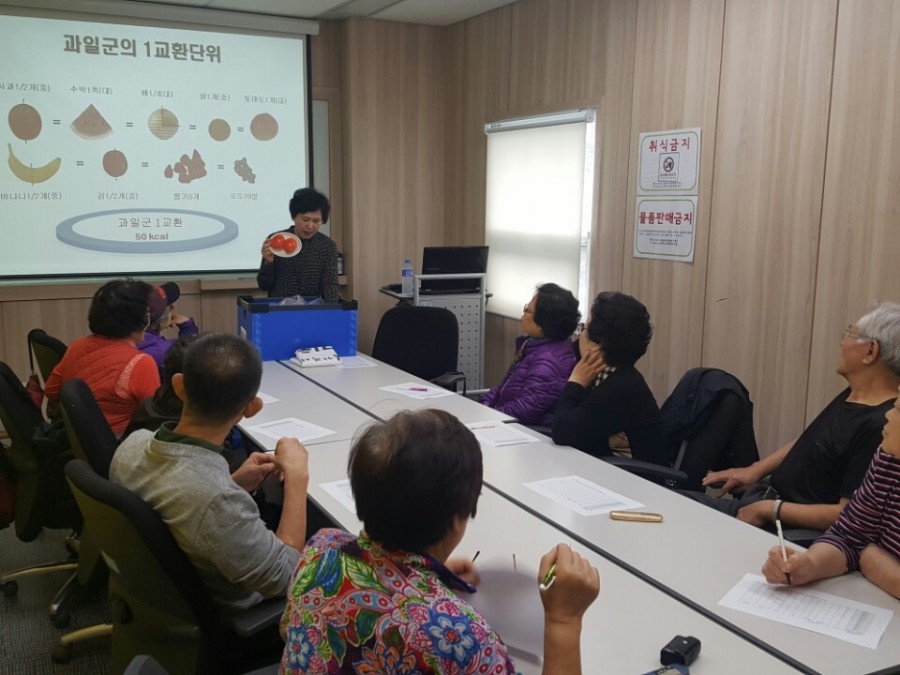 건강증진사업에서는 어르신들의 당뇨병 자기관리 능력향상을 위한 소집단프로그램을 총 6회기에 걸쳐서 진행하였습니다, 참여자의 당뇨검사, 당뇨이론교육, 약물교육, 운동교육, 식사교육, 웃음치료 등의 내용으로 프로그램을 구성하여 당뇨질환을 보유하고 있는 어르신들이 스스로 관리할수 있는 방법을 터득할 수 있는 기회가 되었습니다.