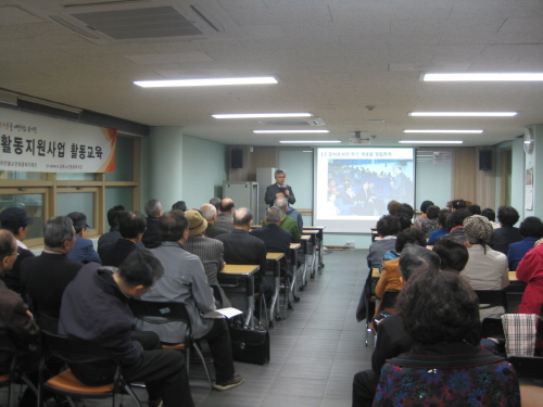 본 복지관에서는 노인사회활동지원사업 노인전문강사파견사업 참여자 66명을 대상으로 활동의 질을 향상시키고자 2015년 4월9일(목)에 활동교육을 진행하였습니다.