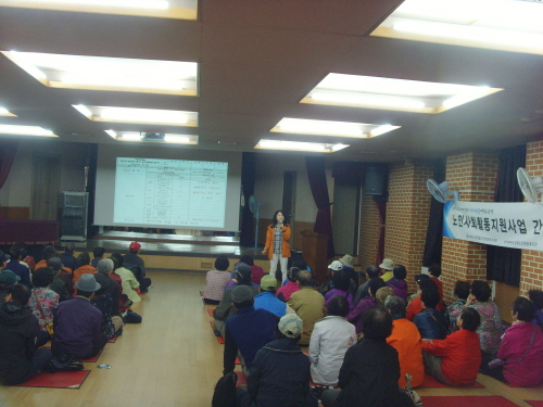 본 복지관 노인사회활동지원사업에서는 복지시설환경도우미파견사업 참여자 125명을 대상으로  참여자간의 유대감 강화, 상호정보 교환의 장을 마련하고자 금일 2015417()에 간담회를 진행하였습니다.