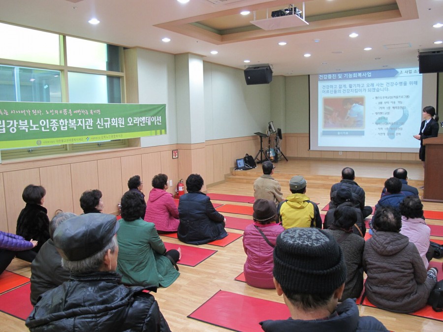 본 복지관에서는 신규회원을 대상으로 복지관 회원가입을 진행하고 있으며 금일에는 2014년 10월 16일 ~ 11월 19일까지 신규가입을 한 어르신을 대상으로 오리엔테이션을 실시하였습니다.