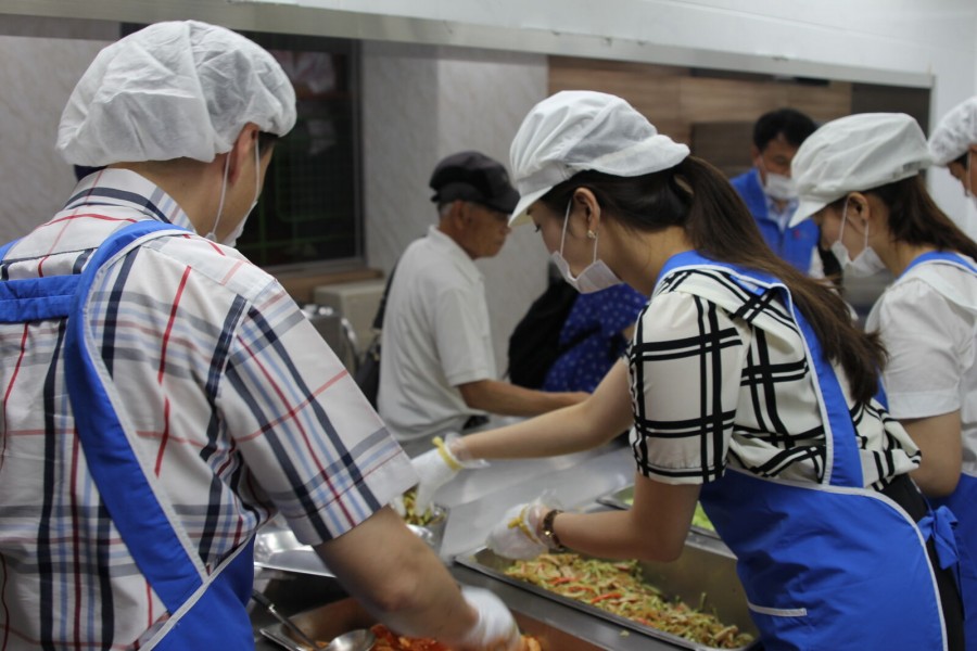 경로식당 이용어르신들을 대상으로 정성스럽게 준비한 중식을 제공하고