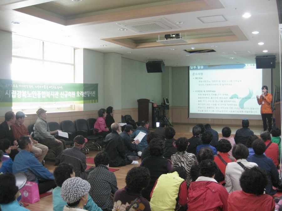 금일 2014년 4월 1일 ~ 4월 16일까지 신규 가입을 한 어르신을 대상으로 오리엔테이션을 실시하였습니다.