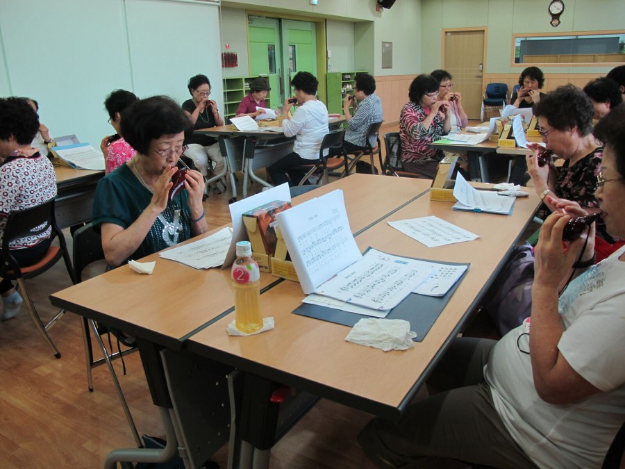 열정적으로 오카리나 연주를 위해 열심히 참여하고 계신 어르신들의 모습이 아름답습니다.