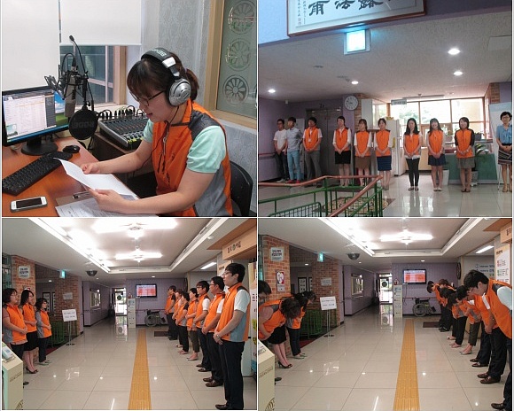 이에 금일 복지1과 정주희 팀장의 "오늘의 명언 및 안내 방송" 진행에 따라 전 직원이 아침 인사를 실시하였습니다.