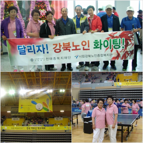 시립강북노인종합복지관 사회교육사업에서는 탁구교실 활용반을 수강하는 어르신 8명을 선정하여 KT&G복지재단 제10회 전국 어르신탁구대회에 참석하였습니다 .